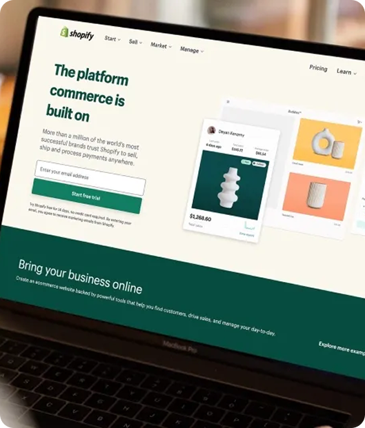 Online store, optimized for conversion We craft high-converting Shopify stores designed to guide customers from product discovery to checkout with zero friction. Every layout, section, and feature is built with sales in mind — and optimized based on industry best practices and user behavior.
